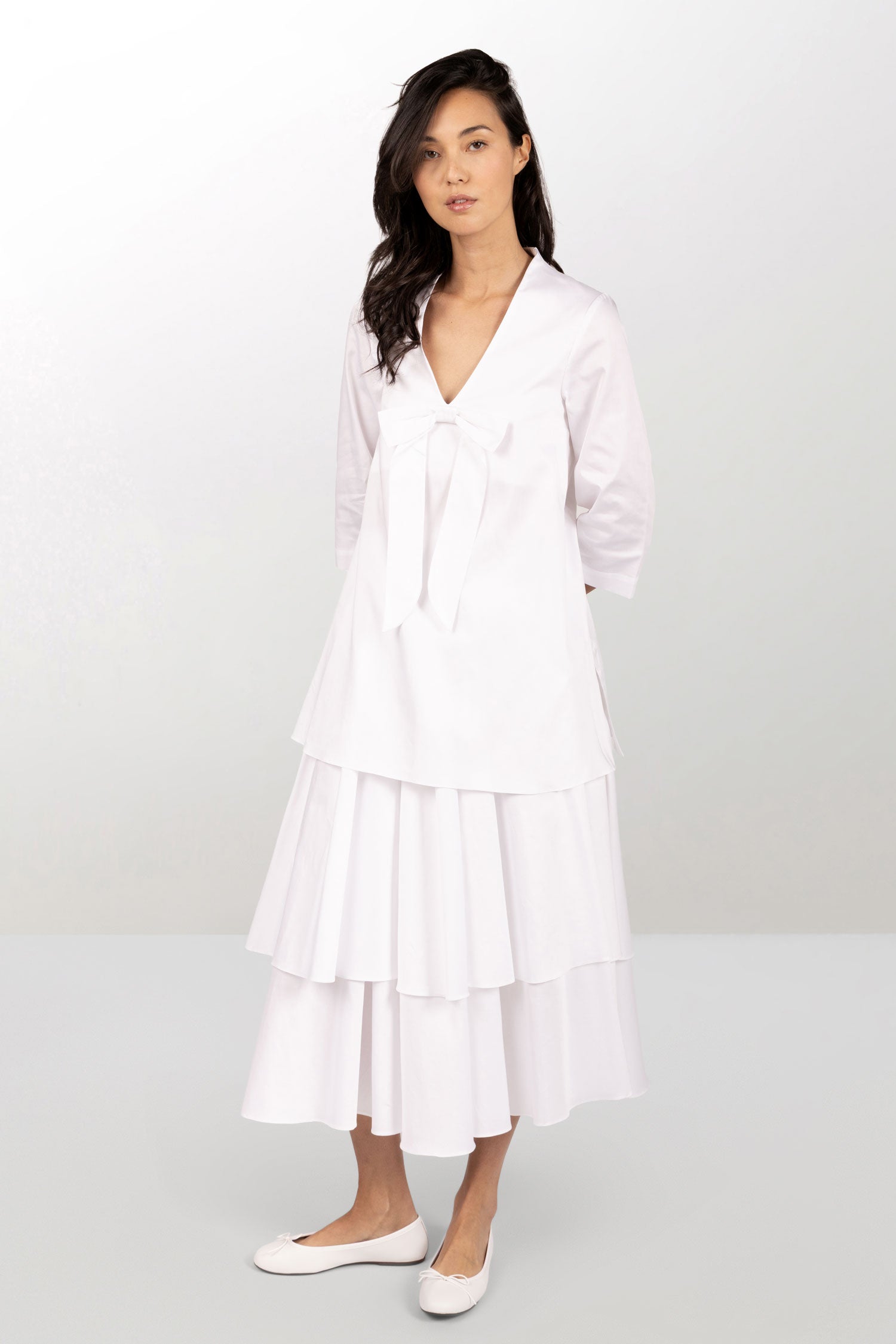 White cotton A-line dress with petticoat