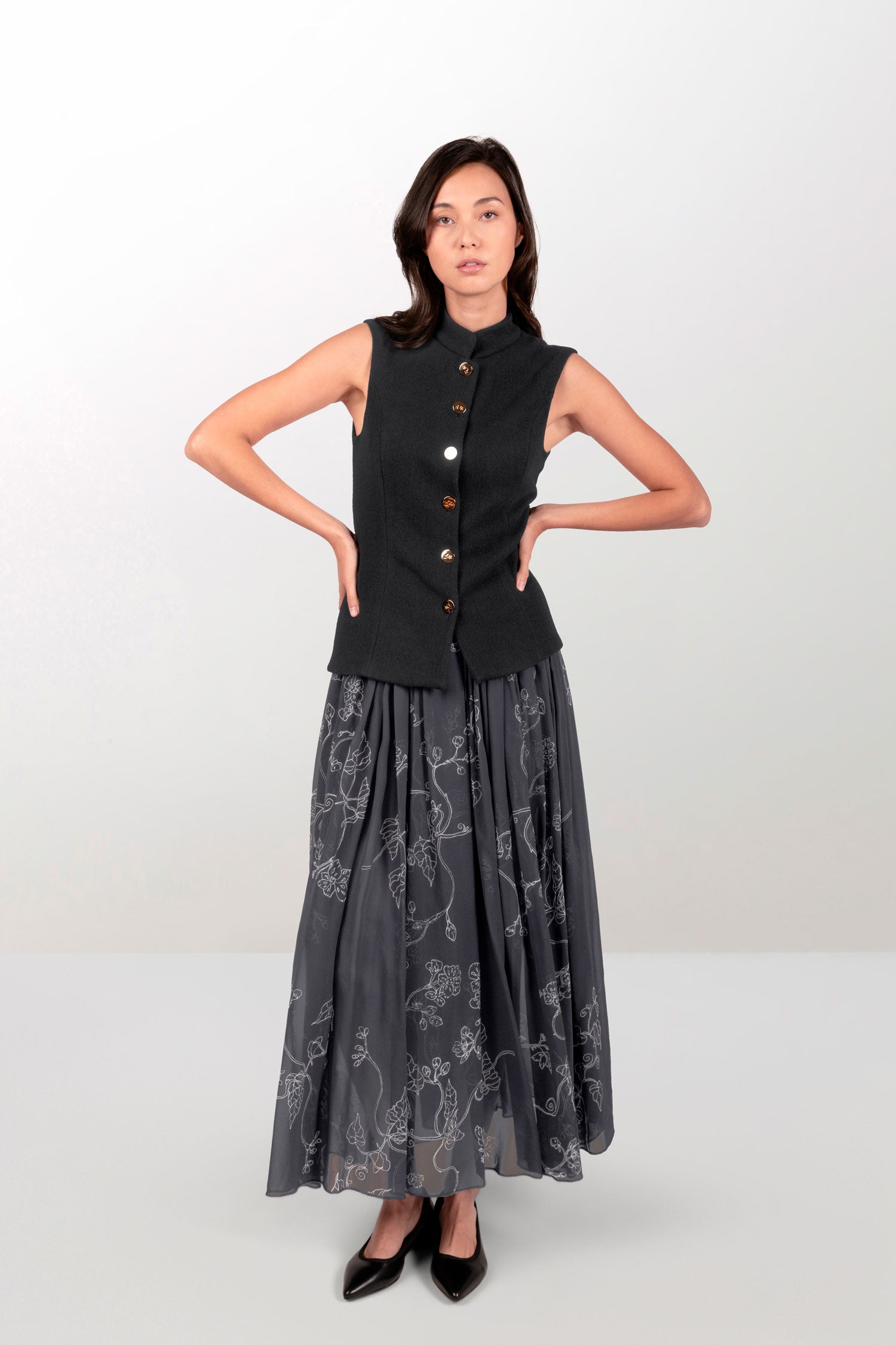 Wool cardigan and chiffon skirt set